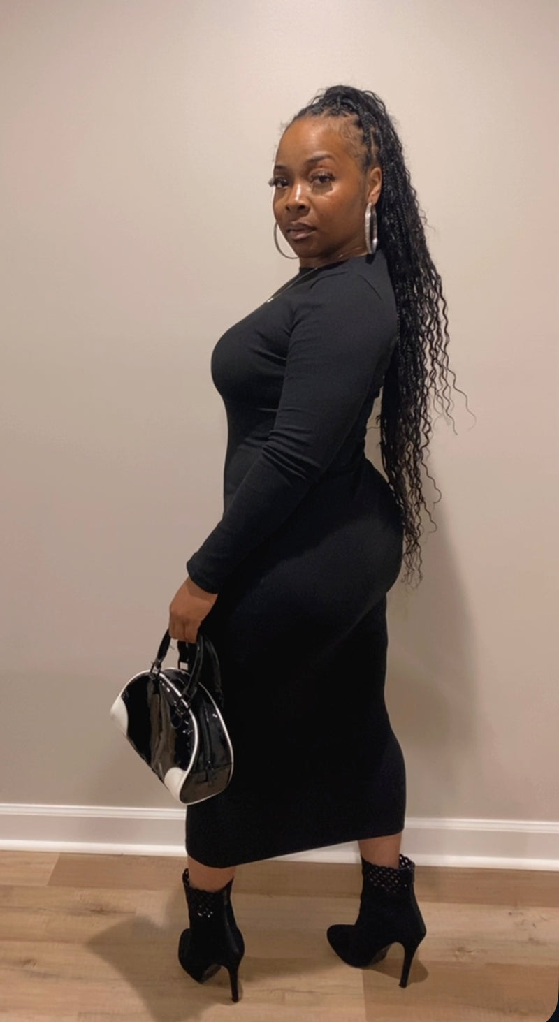 Our “Ms. Body Dress” Features: Great stretch, long sleeve, fitted with no closure.