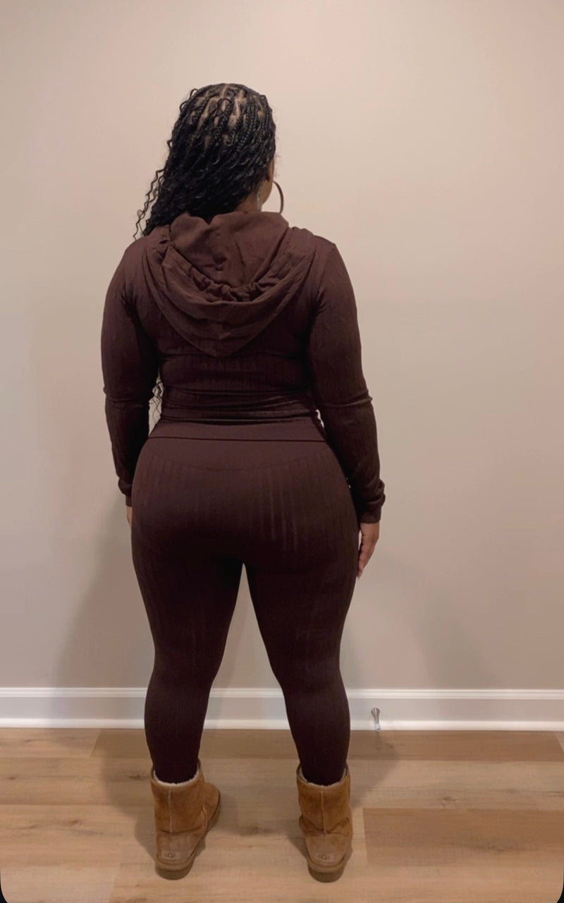 Our “Tree Tree Set” Features: Great stretch, Seamless, Zipper Hoodie, Leggings, No Closure
