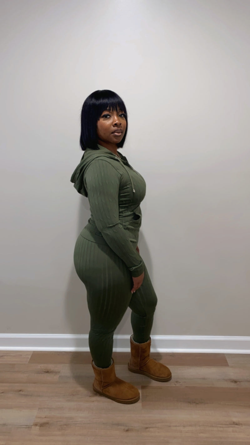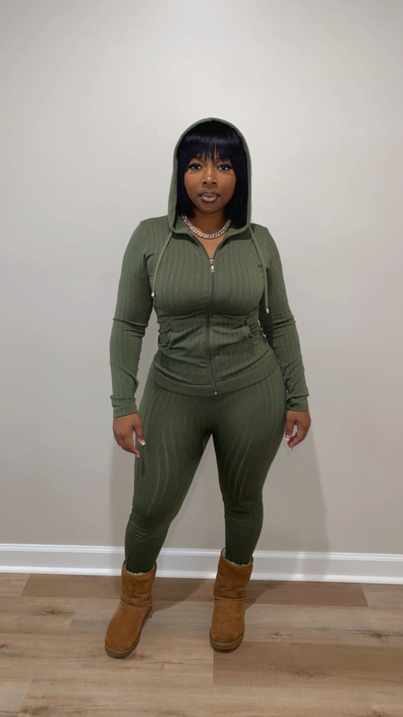 Our “Tree Tree Set” Features: Great stretch, Seamless, Zipper Hoodie, Leggings, No Closure