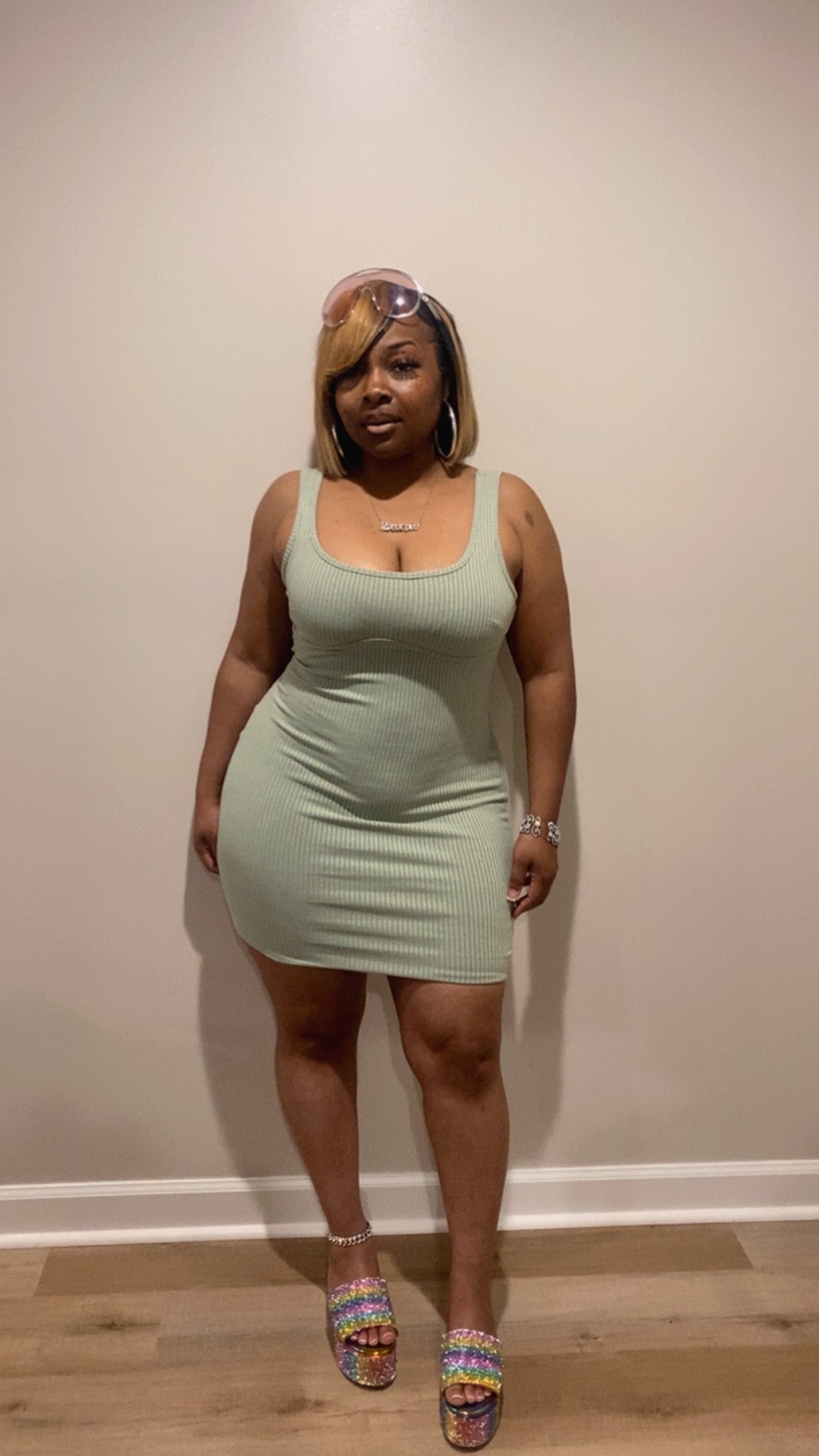 Our “Girly Girl Dress” Features: Great Stretch, tank strap, no closure.
